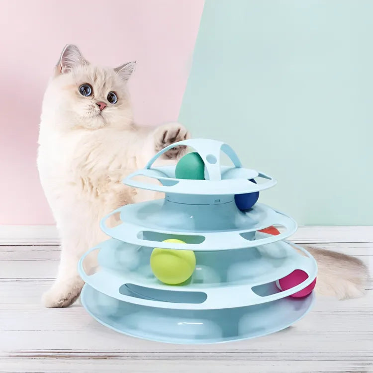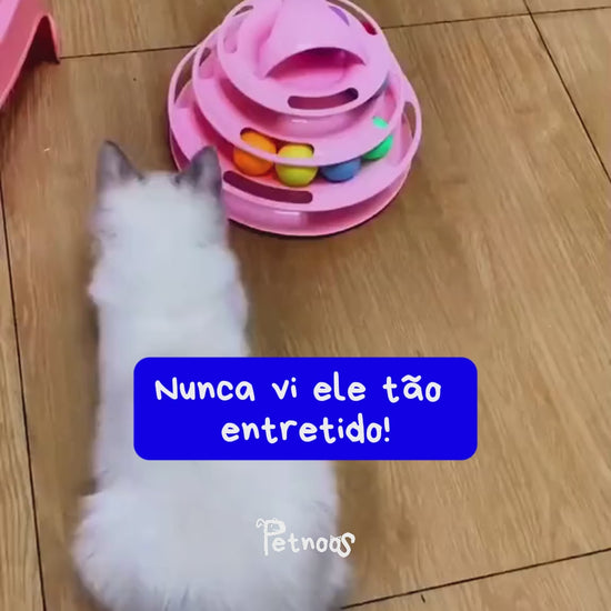 👉 Como usar: coloque a torre no chão e veja seu gato girar as bolinhas com as patinhas, se divertindo a cada movimento!